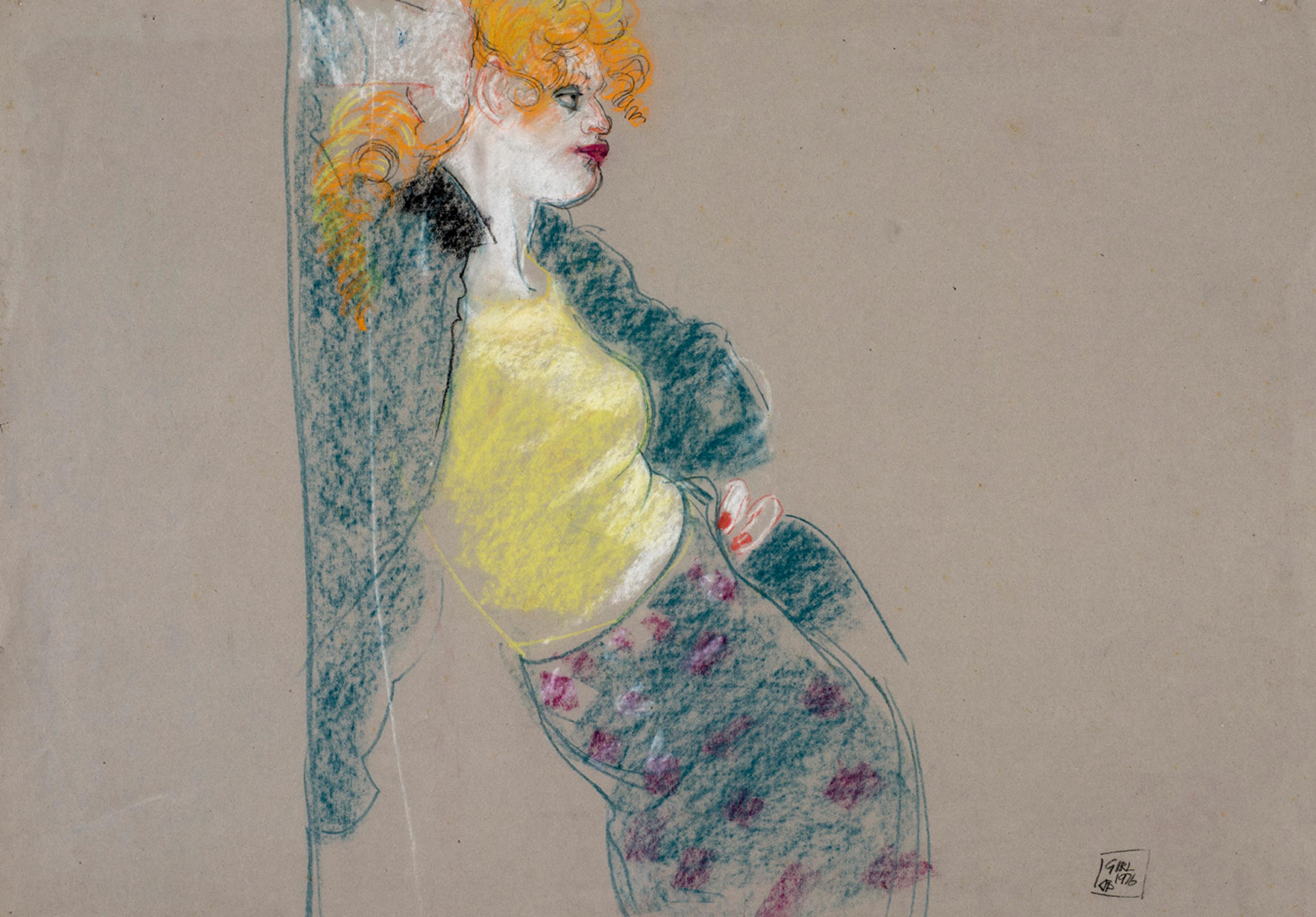 Jo (Josephine) Brocklehurst (1935 - 2006) studied at Central Saint Martins and began her career as a fashion illustrator. She later focused on portraiture, drawing directly from models at her studio in West Hampstead and in nightclubs and theatres in Berlin, London and New York. Her work documents the alternative subcultures of the 1970s, 80s and 90s that went on to shape mainstream fashion and performance scenes.