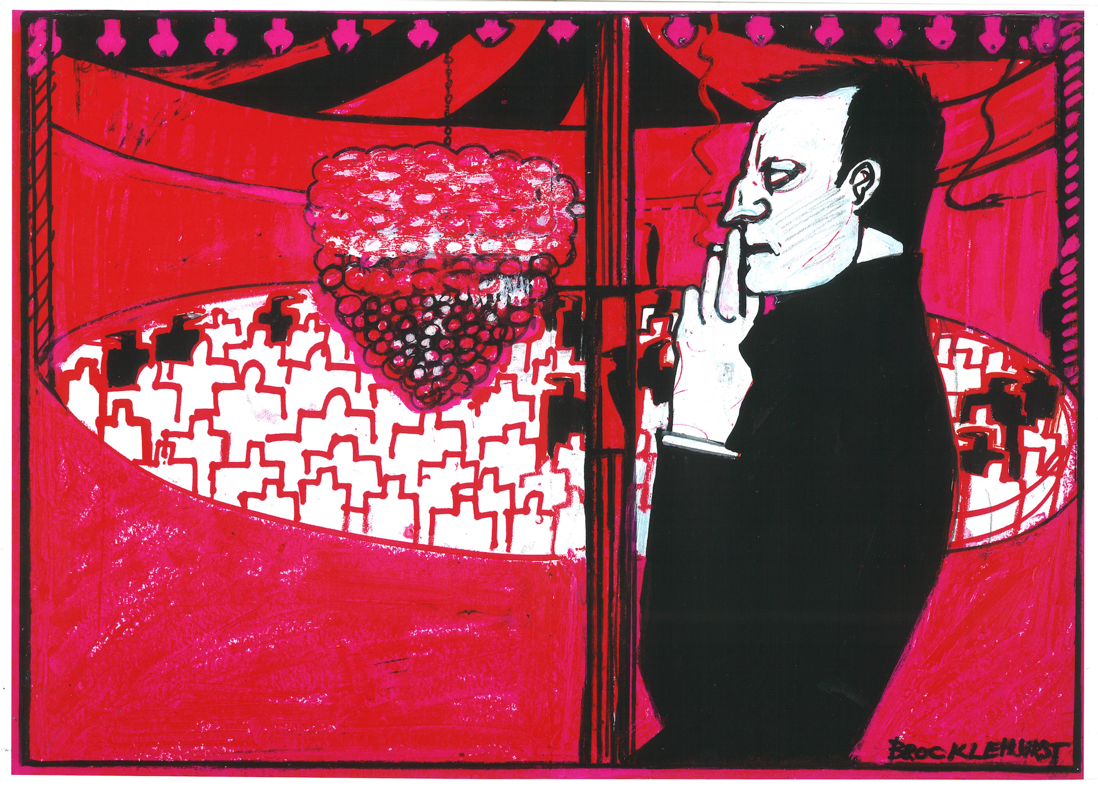 In 1999, Brocklehurst was artist in residence at newspaper Berliner Zeitung during Berliner Theatertreffen, a festival of new German theatre. The paper wanted to revive the Weimar tradition of theatre reviews being accompanied by illustrations, rather than using photographs. Brocklehurst drew behind the scenes and from her seat during performances.