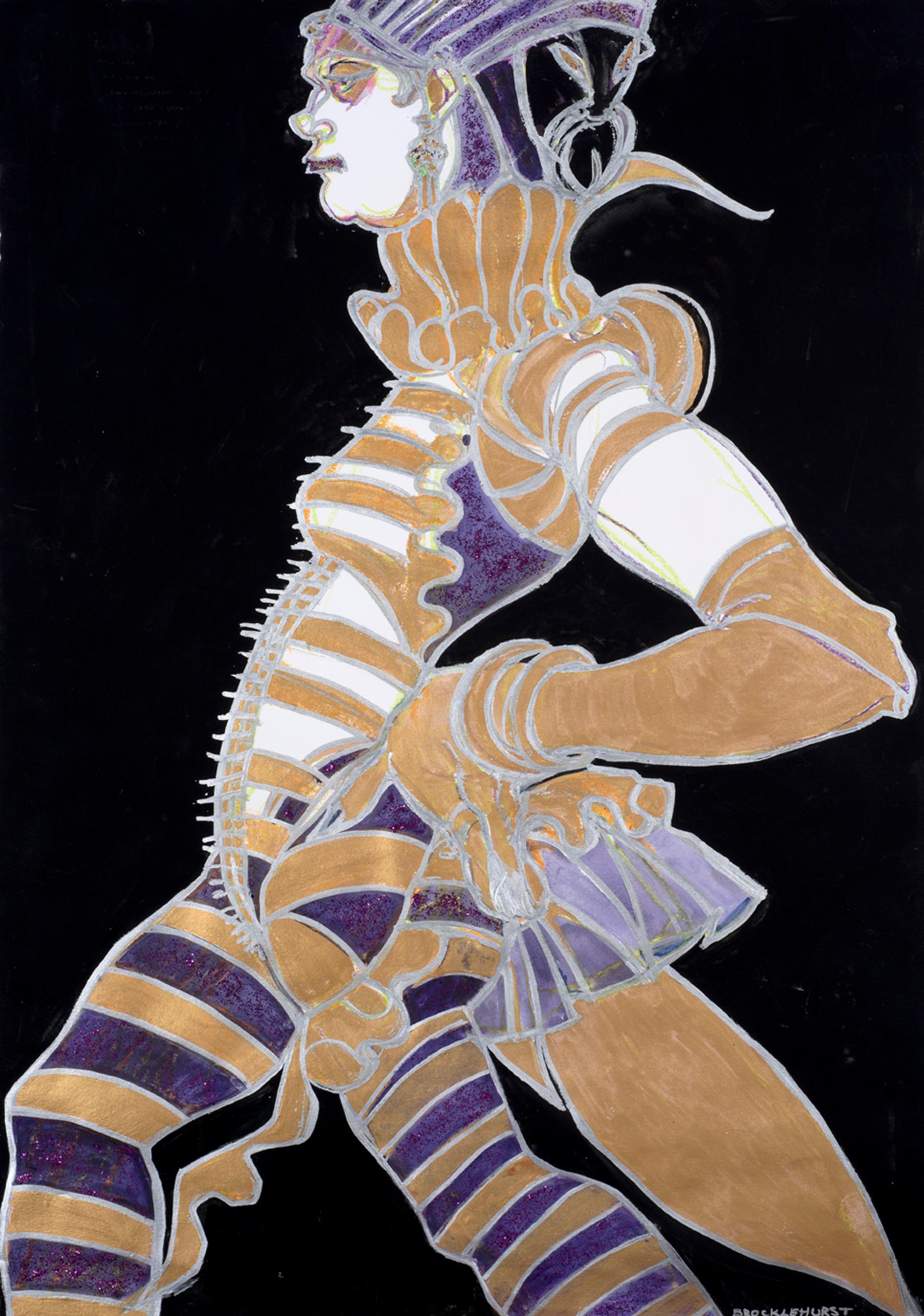 Jo (Josephine) Brocklehurst (1935 - 2006) studied at Central Saint Martins and began her career as a fashion illustrator. She later focused on portraiture, drawing directly from models at her studio in West Hampstead and in nightclubs and theatres in Berlin, London and New York. Her work documents the alternative subcultures of the 1970s, 80s and 90s that went on to shape mainstream fashion and performance scenes.