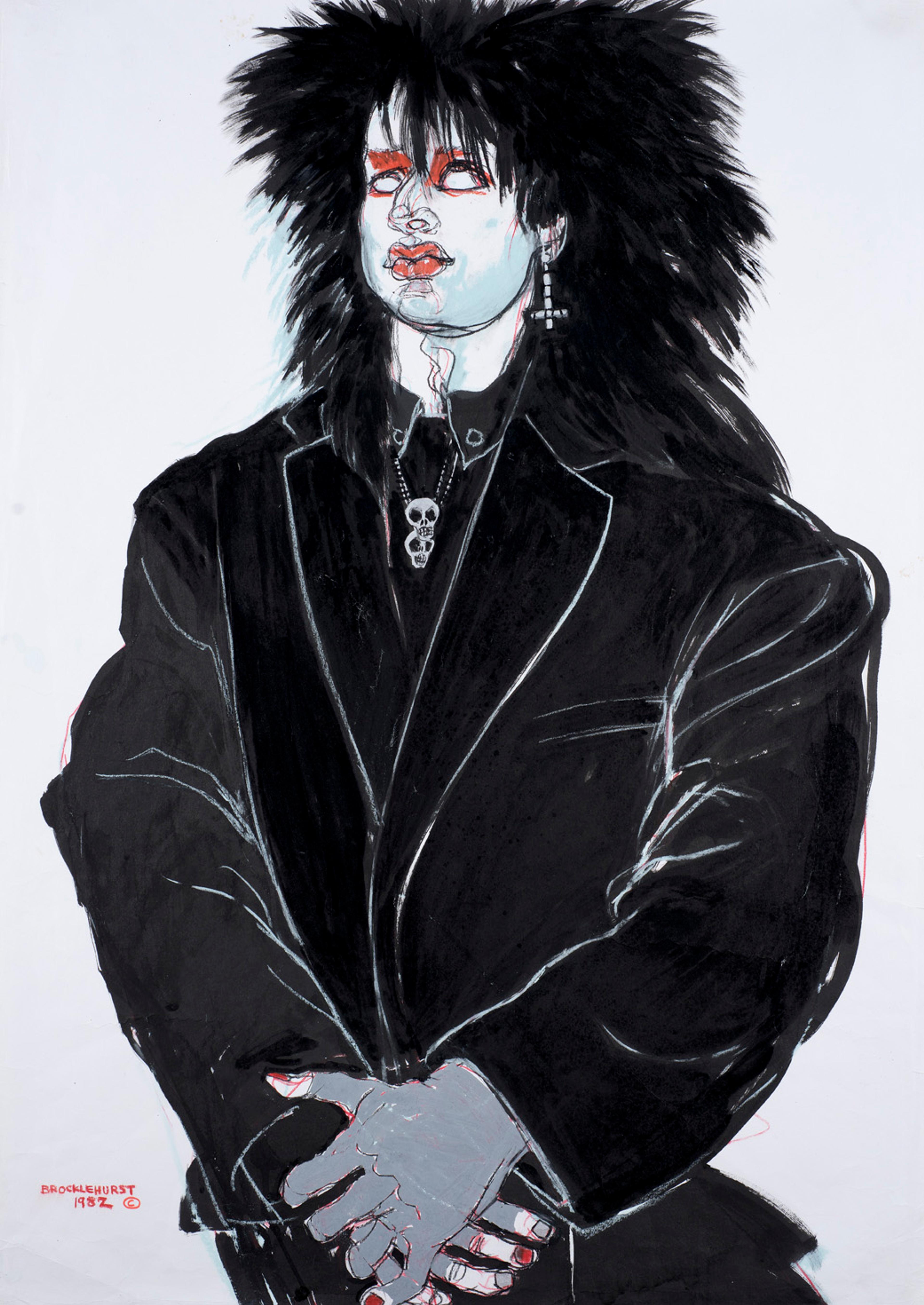 In the 1980s, Brocklehurst drew a series portraits of members of the Kill Your Pet Puppy collective who were living in a squat close to her studio. Attracted to their anarcho-punk dress and ethos, she said “I felt that they understood very well what was going on in the world, what was in it for them”.