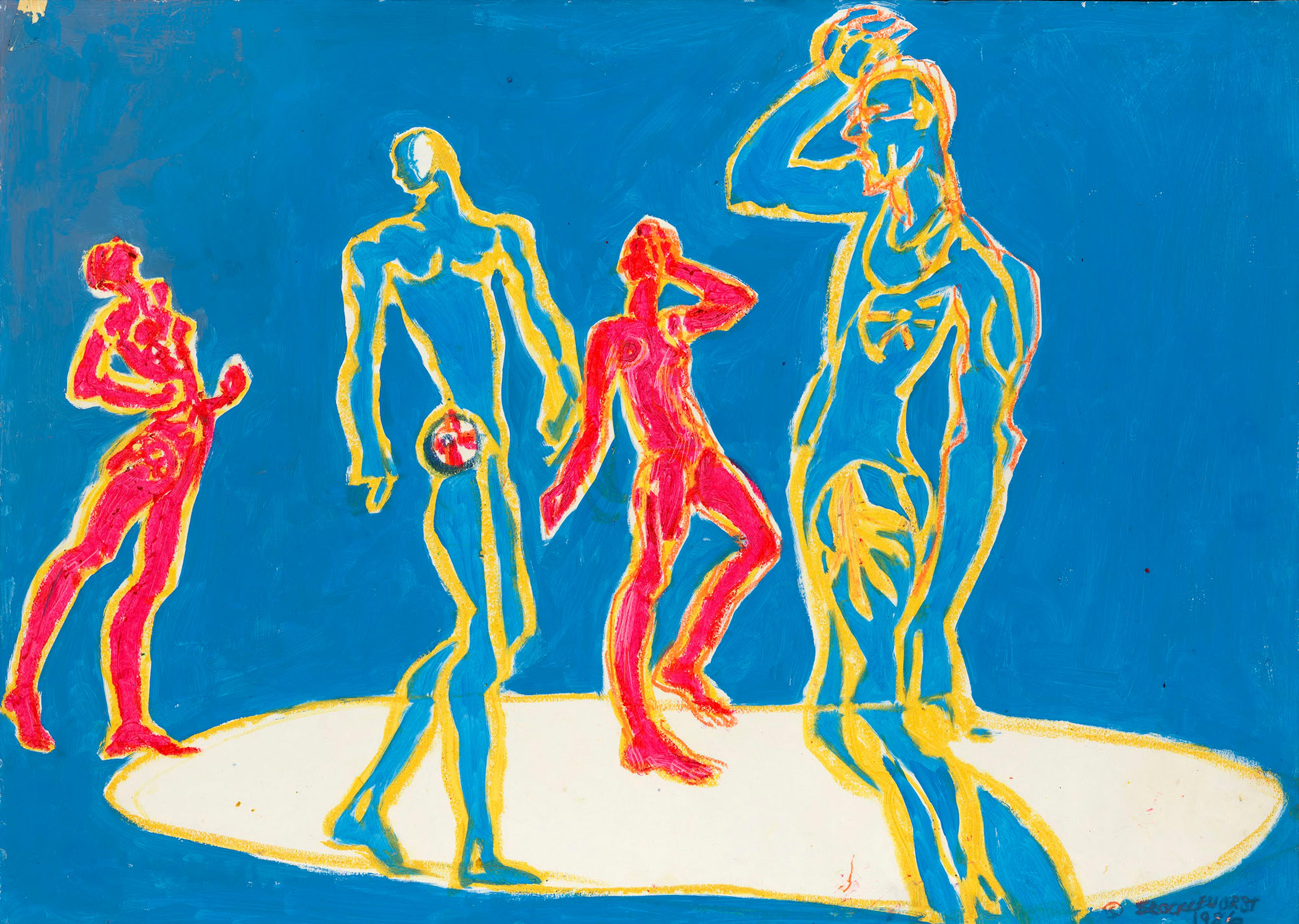 In 1986 Brocklehurst visited the Institute of Applied Theatre Studies in Giessen, Germany during Diskurs Festival. She drew Karl Oppermann and his students performing The Crazy Locomotive, a play written by Stanisław Ignacy Witkiewicz.