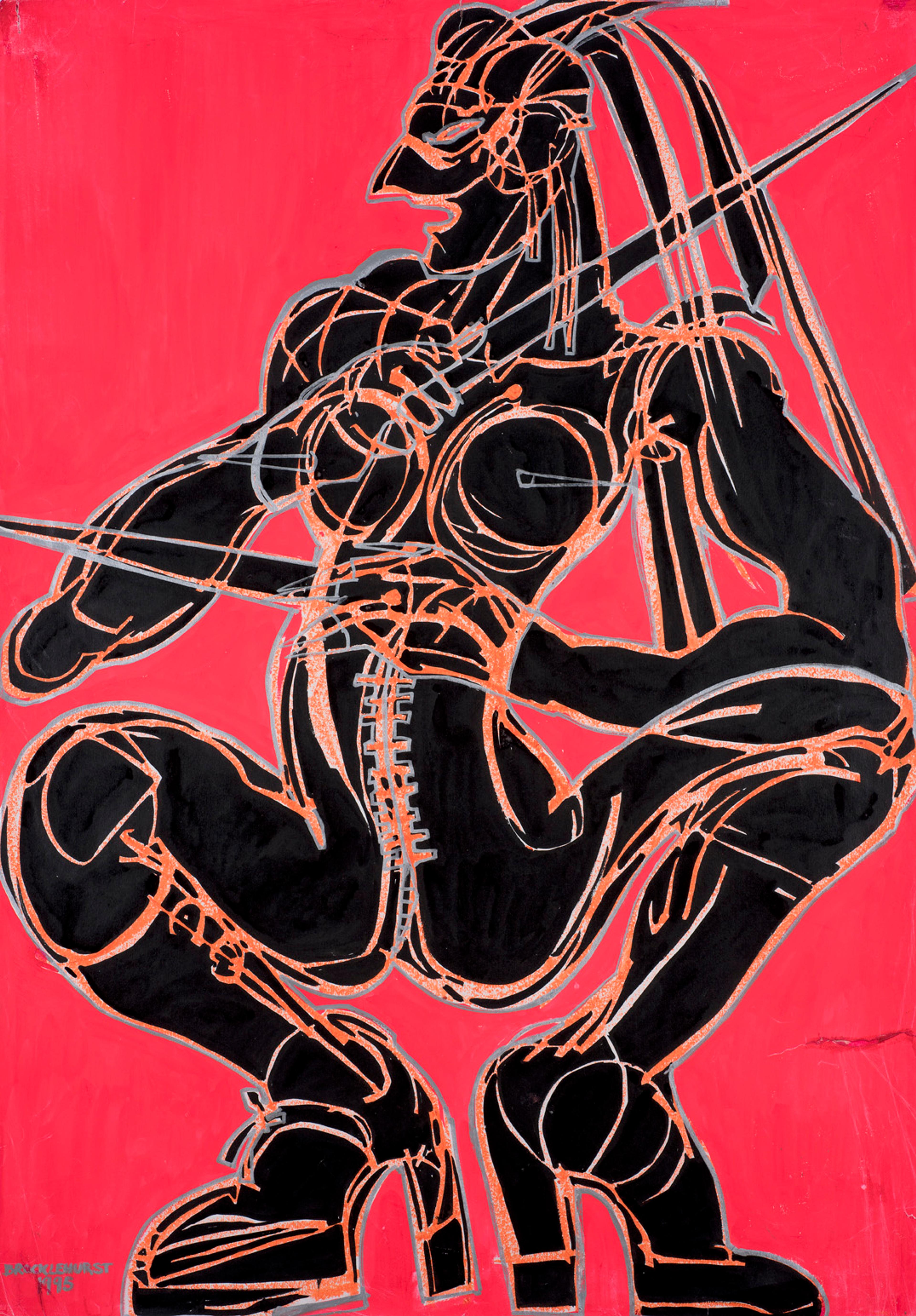 Jo (Josephine) Brocklehurst (1935 - 2006) studied at Central Saint Martins and began her career as a fashion illustrator. She later focused on portraiture, drawing directly from models at her studio in West Hampstead and in nightclubs and theatres in Berlin, London and New York. Her work documents the alternative subcultures of the 1970s, 80s and 90s that went on to shape mainstream fashion and performance scenes.