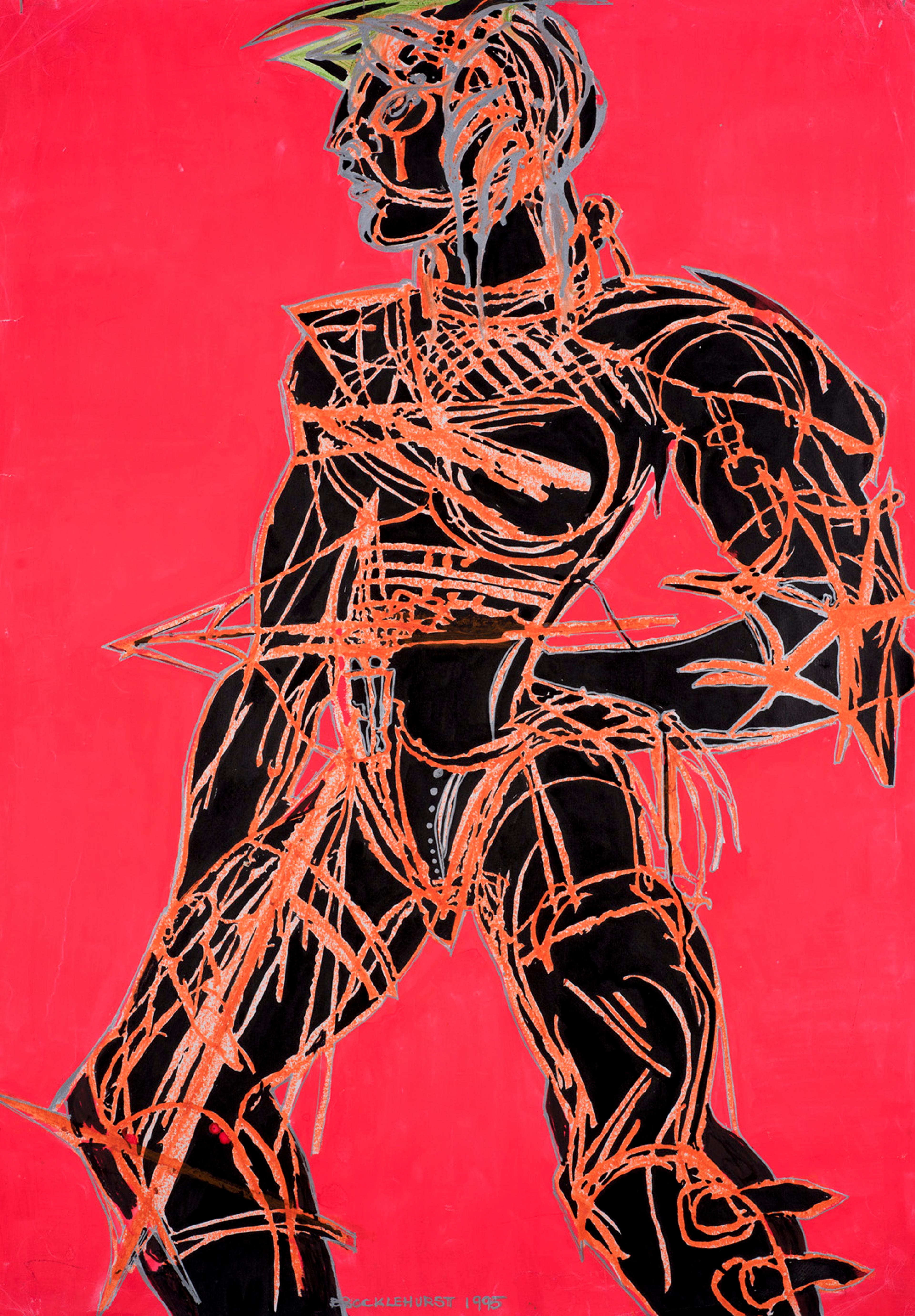 Jo (Josephine) Brocklehurst (1935 - 2006) studied at Central Saint Martins and began her career as a fashion illustrator. She later focused on portraiture, drawing directly from models at her studio in West Hampstead and in nightclubs and theatres in Berlin, London and New York. Her work documents the alternative subcultures of the 1970s, 80s and 90s that went on to shape mainstream fashion and performance scenes.